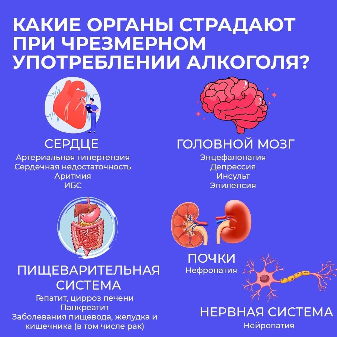 Чрезмерное употребление алкоголя — одна из главных причин смертности и тяжелых заболеваний (сердечно-сосудистые, онкологические, болезни печени).