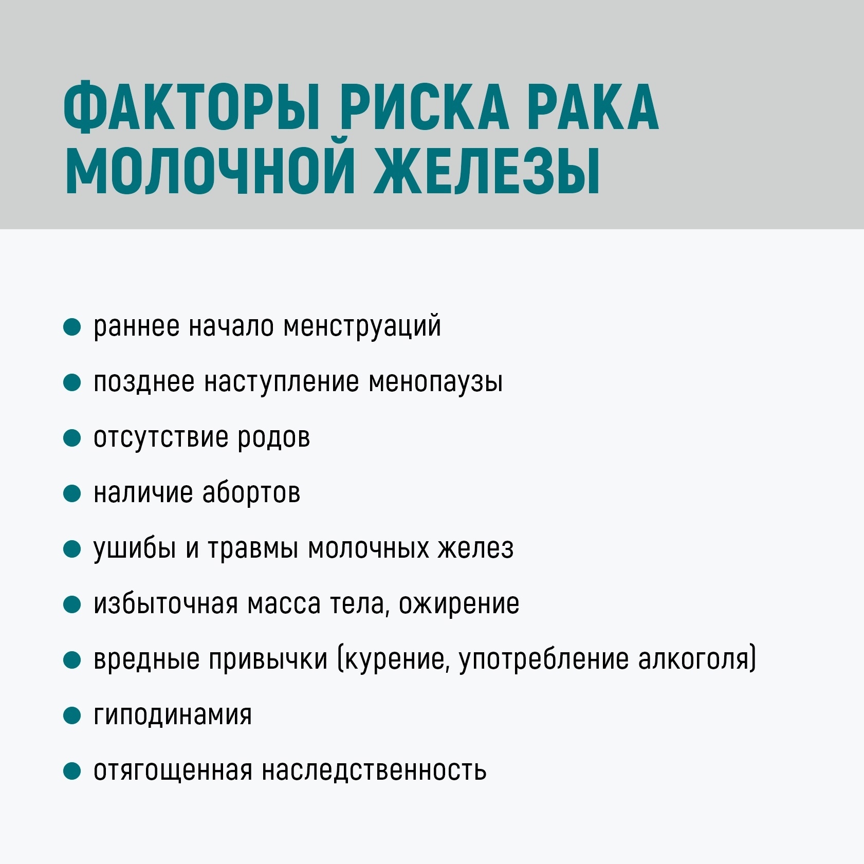 Возраст: Риск развития рака молочной железы повышается с возрастом.