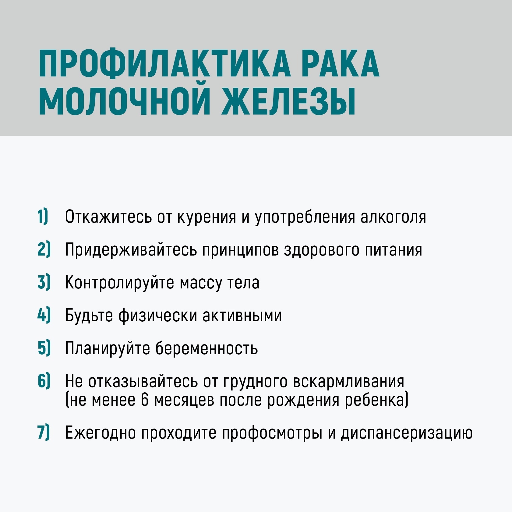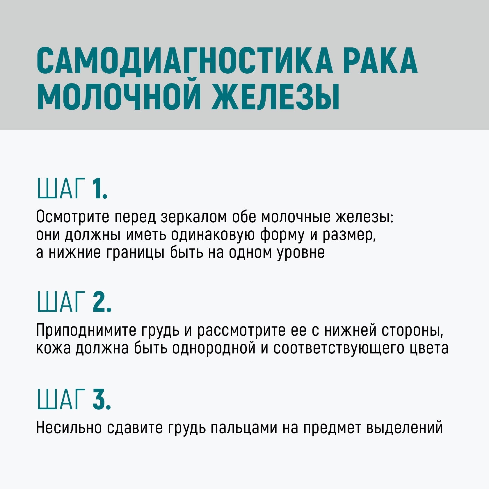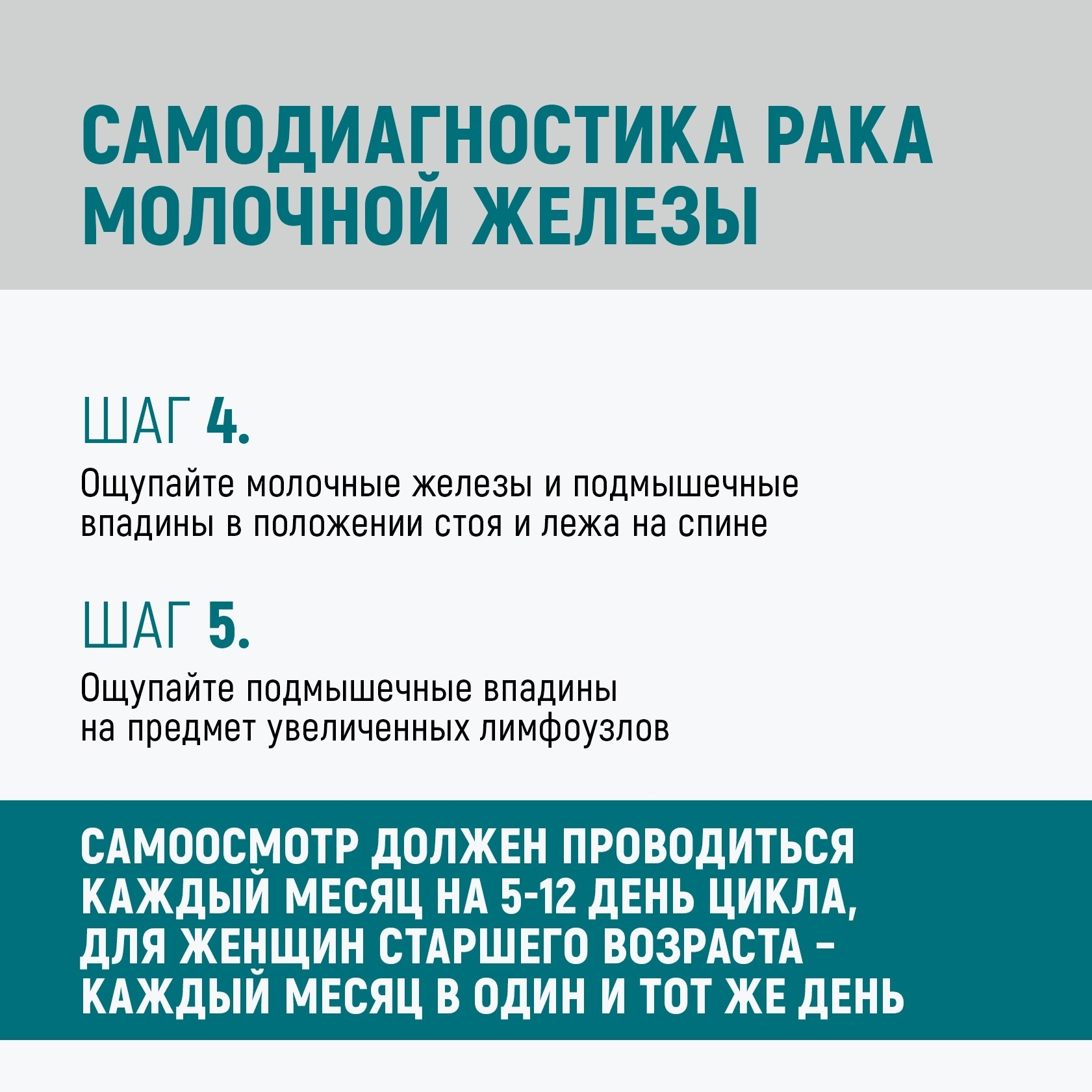Проводите самообследование молочных желез ежемесячно после окончания менструации для выявления уплотнений.
